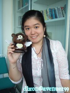 Yvonne got the cute bear piggy bank from Bibi…