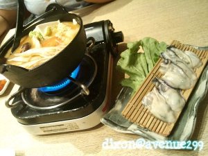Take a look at this! Ala-shabu-shabu with a plate of fresh oysters…