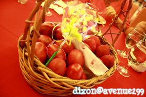 A basket of red eggs… chicken and duck eggs to be exact… 一粒鸡,一粒鸭,活到一百!(Cantonese saying : one chicken egg, one duck egg, live until one hundred of age)