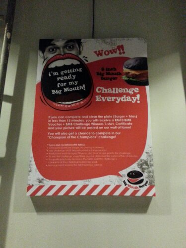 And I saw a poster asking for a BMB Challenge. Those who can finish up a set of burger plus fries within 15 minutes will win some prizes. Are you up for the challenge?