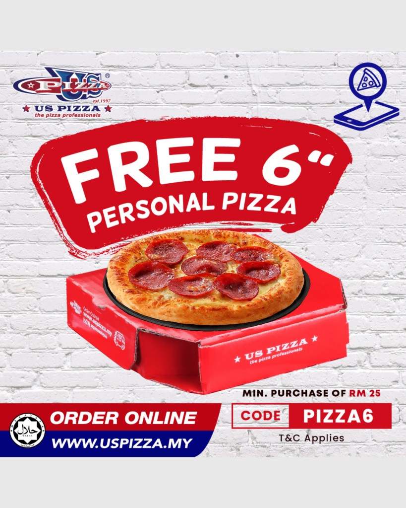 Promo code: PIZZA6 (free personal pizza with any purchase of RM25)
