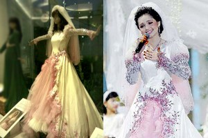 Busana perkahwinan yang dipakai di dalam resepsi perkahwinan Siti. Siti menyanyikan lagu “Cahaya Cinta” pada masa itu. (Oh… pedih lagi hatiku…)